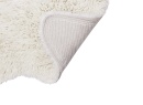 Mit seiner sanften Silhouette und seinem leuchtend weißen Farbton verleiht dieser Wollteppich der Inneneinrichtung sofort ein Gefühl von Komfort und Gelassenheit. Seine weiche Textur lädt zum Entspannen ein und schafft eine warme Atmosphäre im Raum. Im Wohnzimmer, einem Erwachsenenschlafzimmer oder einer Leseecke aufgestellt, wird er zu einem dekorativen Element, das zugleich sanft und elegant ist und den Boden subtil schmückt.
