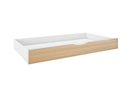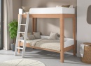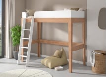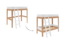 Diseñado en continuidad con la cama mezzanine compatible, este kit de evolución en litera retoma los montantes de haya maciza y los acabados en blanco y madera natural. El grosor de los paneles y la precisión de los ensamblajes garantizan estabilidad y coherencia estética. El conjunto conserva la misma exigencia de solidez y acabado que la estructura original.