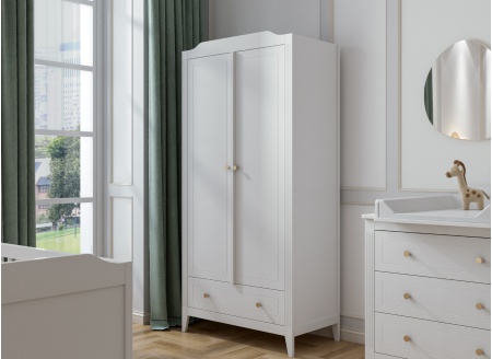 Con su refinado color gris, el armario MILENNE se impone como un mueble sobrio y moderno, capaz de armonizar con todos los estilos de decoración. Su diseño depurado se realza con un pomo de latón dorado, aportando un toque de elegancia discreta. Gracias a su cuidada fabricación y solidez, encuentra naturalmente su lugar en una habitación suave y funcional, ideal para acompañar al bebé a lo largo de los años.