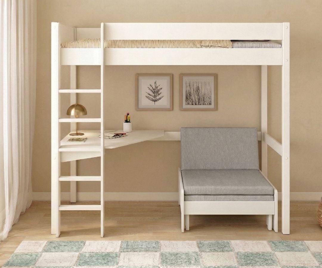 - Un lit surélevé enfant libère immédiatement une zone pour jouer, ranger ou créer un coin lecture.