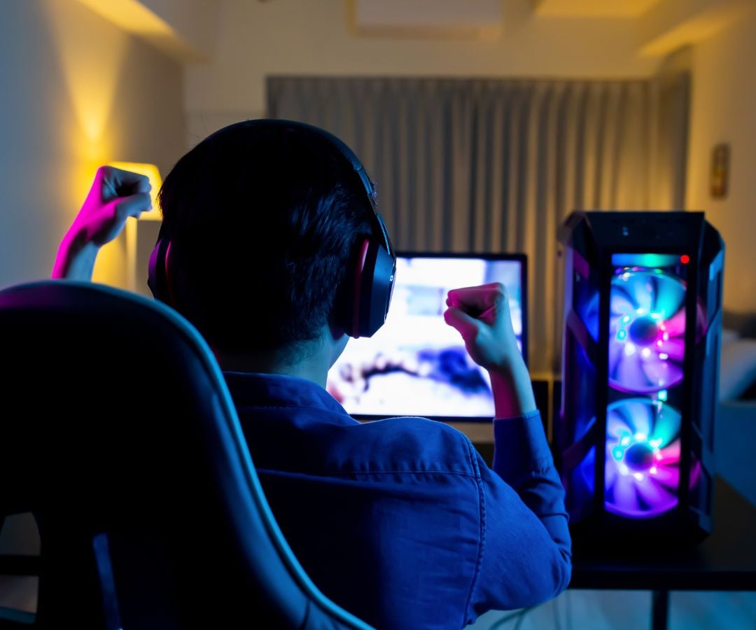 - Chambre de gamer : murs foncés, bureau spacieux, chaise ergonomique et bandes LED RGB créent une ambiance immersive.