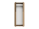 L'armadio guardaroba PAVEL affascina per il suo aspetto moderno ed elegante. Le sue facciate in imitazione rovere artigianale sono sottilmente evidenziate da una striscia nera verticale, creando un contrasto raffinato. Questo stile senza tempo ne fa un mobile che si armonizza tanto con una camera da adulto quanto con una camera da adolescente.
