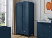 L'armadio a 2 ante e 1 cassetto ÉLORIA in blu imperiale incarna la perfetta alleanza tra estetica e funzionalità. Il suo stile classico rivisitato, sublimato da una tonalità profonda e raffinata, si integra perfettamente sia in una cameretta per neonati che in una camera per bambini. Le linee pulite sono valorizzate da un elegante effetto cornice ottenuto grazie a una precisa fresatura, e da piedi smussati ornati con sottili scanalature per un tocco di carattere discreto.