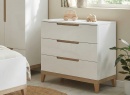 Un comò è incluso anche in questa camera, ha 3 cassetti profondi 38 cm per riporre le cose del vostro bambino; e piedi in faggio massiccio, come il letto, per un mobile robusto.
