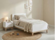 Questa camera per bambini dispone di un letto 90x200 cm con una testiera integrata e piedi in faggio massiccio, per un mix di dolcezza e naturalezza. Per completare questo letto, pensate di scegliere una rete 90x200 e un materasso comodi.