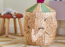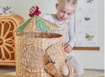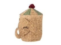 Il BOBO di Bloomingville MINI non è un semplice accessorio pratico: è un vero elemento decorativo pieno di fascino. Intrecciato in giacinto d'acqua naturale, questo grande cestino portaoggetti prende la forma di un tenero elefante, con le sue ciglia ricamate nere e il suo originale coperchio a forma di tendone. Le sue dimensioni di L35 × H50 × L35 cm lo rendono un oggetto spazioso e funzionale, ideale per la camera dei bambini.