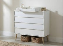 Il fasciatoio BOSQUE Bianco si distingue per il suo design intelligente e il suo lato rimovibile. Facile da installare e rimuovere, permette di creare uno spazio cambio sicuro senza ingombrare permanentemente il vostro interno. Grazie al suo sistema di fissaggio semplice ed efficace, si adatta rapidamente al comò BOSQUE, consentendo un'installazione e una rimozione in tutta semplicità. Quando il bambino cresce, potete rimuovere il fasciatoio senza difficoltà e ritrovare un comò classico, offrendo così un utilizzo prolungato ed evolutivo del mobile.