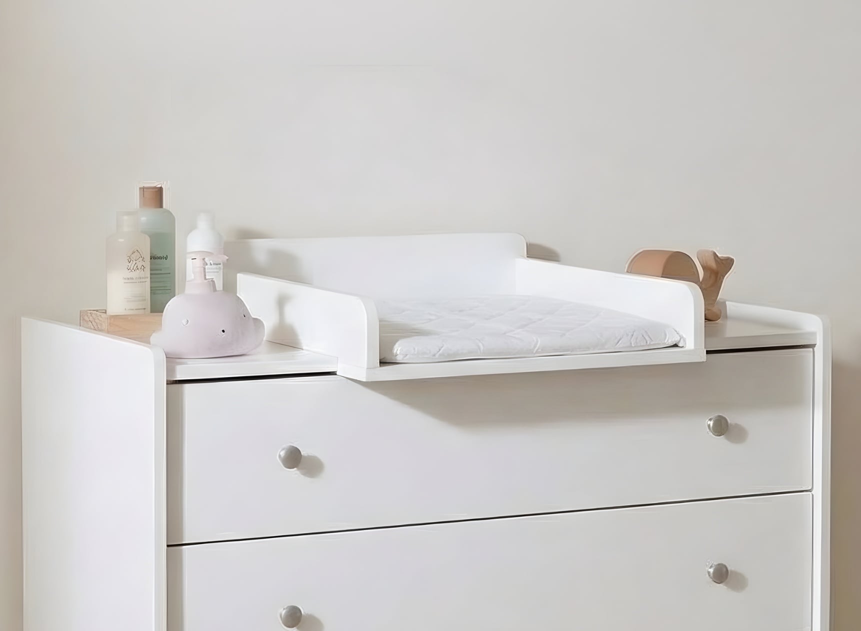 Il fasciatoio, facile da fissare al comò ADELE, si integra perfettamente per trasformare quest'ultimo in uno spazio funzionale ed elegante per il cambio. Quando il bambino cresce e il fasciatoio non è più necessario, può essere rimosso con facilità, lasciando il comò intatto e pronto ad evolversi secondo le vostre esigenze.