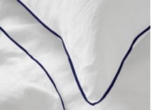 Federa Percalle di Cotone con Cordoncino - Bianco & Blu Navy