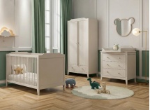 Ogni componente del lettino ÉLORIA riflette un alto livello di esigenza. Le barriere, i piedini e le modanature sono realizzati in faggio massello certificato PEFC, apprezzato per la sua solidità e durata. I pannelli laterali, in legno ricomposto certificato PEFC e a bassissima emissione di formaldeide, contribuiscono a un ambiente più sano. La finitura crema è realizzata con una vernice all'acqua senza solventi né COV, rispettosa della salute dei più piccoli e dell'ambiente.