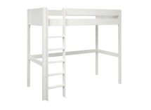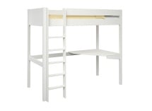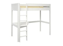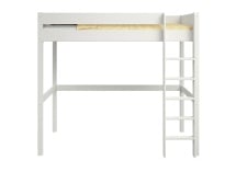 Questo letto a soppalco 90x190 è realizzato in pino massello con una vernice bianca ad acqua, senza solventi, per offrire un mobile tanto sano quanto elegante. Le curve curate, lo spessore dei pannelli e la qualità della finitura rivelano una concezione premium particolarmente durevole. Il legno certificato FSC e i pannelli a basso tasso di formaldeide garantiscono uno spazio notte rispettoso dell'ambiente interno.