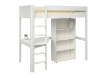 Letto a soppalco con scrivania 90x190 e libreria ARTHUS - Bianco