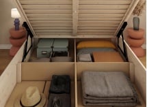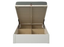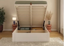 Grazie al suo spazioso contenitore, questo letto contenitore 140x190 permette di ottimizzare facilmente lo spazio nella camera. L'interno è diviso in 4 scomparti per uno stoccaggio ordinato della vostra biancheria da letto, piumoni o vestiti fuori stagione. La presenza di un fondo impedisce alla polvere di salire, garantendo oggetti sempre puliti. Una soluzione di stoccaggio astuta e invisibile che libera spazio senza ingombrare la stanza.