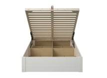 Dotato di una rete a doghe in pino massello da assemblare, questo letto contenitore 140x190 si adatta facilmente a tutte le abitazioni. I potenti pistoni inclusi permettono di sollevare il materasso senza sforzo per accedere al contenitore. La sua capacità di carico fino a 250 kg assicura una grande affidabilità nel tempo. Potrete così godere di un comfort d'uso semplice e sicuro giorno dopo giorno.