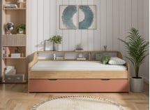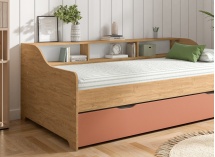 Il letto estraibile AEL 90x200 unisce design caldo e funzionalità per arredare una cameretta per bambini o adolescenti con stile. La sua decorazione in Rovere naturale, abbinata a una facciata Terracotta di tendenza, apporta un tocco morbido e contemporaneo. Ideale per ottimizzare lo spazio, questo letto estraibile offre un posto letto principale confortevole e un secondo letto discreto, perfetto per accogliere un ospite con semplicità.