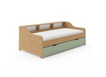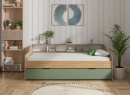 Il letto a scomparsa con contenitore AEL 90x200 rovere e verde è la soluzione ideale per ottimizzare lo spazio in una cameretta per bambini o adolescenti. Grazie al suo cassetto estraibile integrato, offre un secondo posto letto discreto che si apre facilmente quando si riceve un ospite. Una volta riposto, scivola sotto il letto principale per liberare spazio nella stanza.