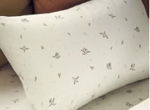 Geïnspireerd door de natuur, brengt het kussensloop in biologisch katoen een elegante en verfijnde toets aan de slaapkamerinrichting. De delicate vogelmotieven creëren een zachte en geruststellende sfeer, bevorderlijk voor het inslapen en het welzijn van uw kind.