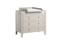 Qua stijl weet deze beige babycommode te charmeren met zijn sobere lijnen en verfijnde afwerking. De mooie knoppen van messing en de licht schuine poten geven het meubel een chique en moderne touch. De zachte, natuurlijke zandbeige kleur creëert een warme sfeer in de kamer van uw kind en past bij elk interieur.
