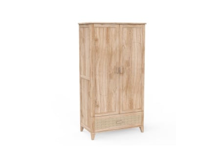 De combinatie van hout en gevlochten rotan geeft een elegante en rustgevende touch aan de decoratie. Voor nog meer gemak kan er een verschoonblad aan worden toegevoegd (apart verkocht), wat de dagelijkse verzorging en het verschonen vergemakkelijkt.