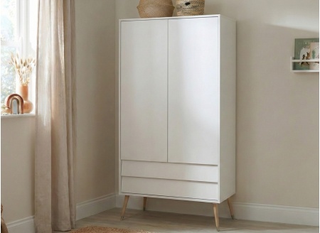 De MILENNE Wit kast is ontworpen om de opbergruimte te maximaliseren terwijl deze weinig ruimte inneemt. Binnenin zorgt een metalen roede ervoor dat baby's kleine outfits kunnen worden opgehangen, waardoor de kleding goed georganiseerd en kreukvrij blijft.