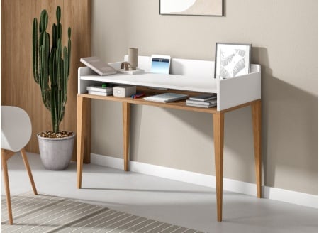 Wilt u een esthetische en functionele werk- of leesruimte creëren? Kies voor ons VINTAGE bureau in Wit en Eiken, geïnspireerd op de jaren 70, om uw interieur te verfraaien. Het kan ook worden gecombineerd met andere meubels uit de VINTAGE collectie.