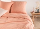 Gewassen biologisch katoensatijn verleidt door zijn stijl die zowel chic als ongedwongen is. Zijn licht matte oppervlak en gekreukt effect creëren een gezellige sfeer in de slaapkamer. Met zijn natuurlijke en eigentijdse tinten – Krijtwit, Linnen, Perzik, Amber, Cipres, Bruin of Linde – kleedt dit set uw bed met discrete en tijdloze elegantie. Perfect om uw slaapruimte te transformeren in een echte oase van rust.
