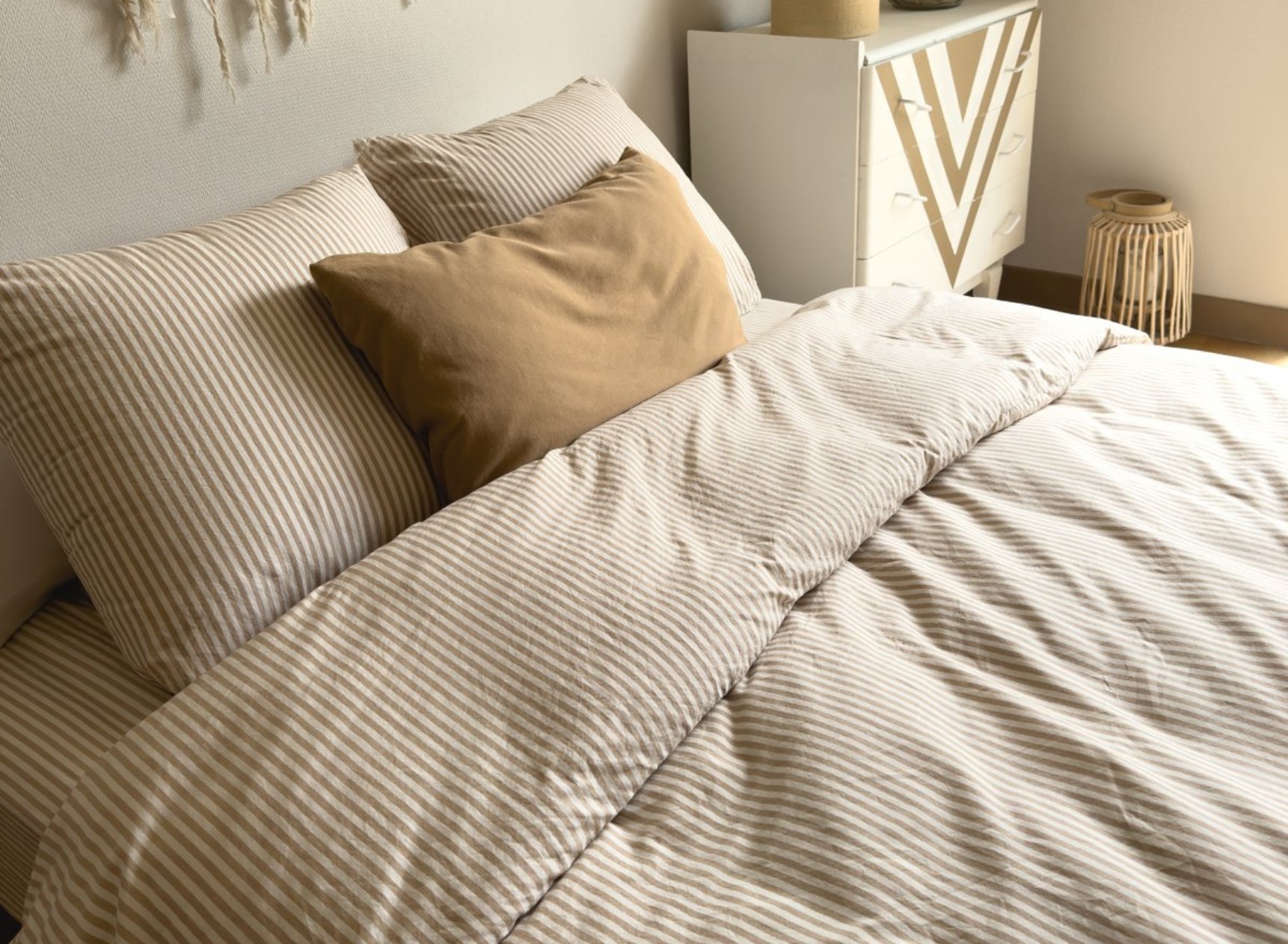 Om uw dekbedovertrek 240x260 te onderhouden, geef de voorkeur aan een zachte was op 40 °C met een natuurlijk wasmiddel. Een gematigde droging of aan de lucht wordt aanbevolen om de vezels te behouden. Licht strijken geeft de percale zijn gladde uiterlijk terug. Deze eenvoudige handelingen maken het mogelijk om de zachtheid, glans en stevigheid van het linnengoed te behouden na het wassen.