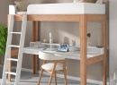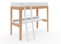 Hoogslaper met bureau 90x200 massief beukenhout SENSON - Wit/Beuken