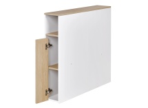 Het is voornamelijk gemaakt van wit geschilderde ecologische MDF-panelen en licht eiken gefineerde ecologische MDF-panelen. Beide soorten panelen zijn PEFC-gecertificeerd.