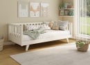 Een Montessori bed in massief grenen, aangepast aan de kinderkamer