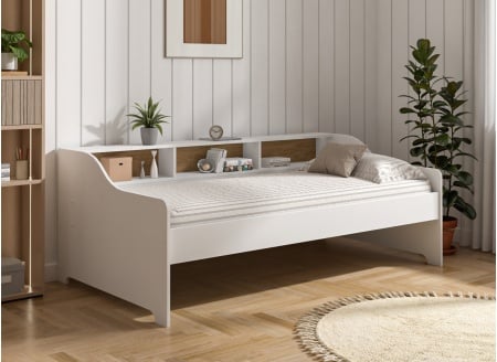 Kinderbed met opbergruimte 90x190 MANLY - Wit/Eiken