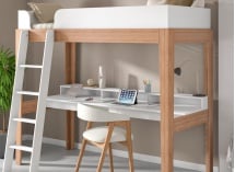 Dit accessoire voor een hoogslaper is een bureau voor een kinderbed dat speciaal is ontworpen om onder de slaapstructuur te passen en een echte werkruimte in de kinderkamer te creëren. Het aangepaste formaat maakt het mogelijk om de beschikbare ruimte onder het bed intelligent te benutten, terwijl een vlotte doorgang behouden blijft. Zo geniet u dagelijks van een functionele en harmonieuze inrichting.