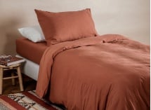 Om de kwaliteit van biologisch katoen te behouden, geef de voorkeur aan een zachte was op 40 °C en drogen aan de lucht of in een delicaat programma. Vermijd agressieve producten die de natuurlijke vezel beschadigen. Combineer dit dekbedovertrek met een bijpassend hoeslaken om een compleet en elegant set te creëren. Met dit duo wordt het bed een echte uitnodiging tot ontspanning, die comfort, esthetiek en ethiek verenigt.