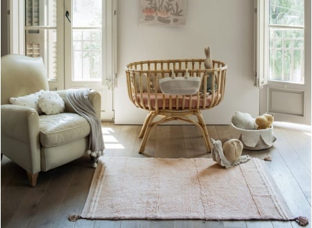 Dit tapijt is gemaakt van natuurlijk katoen dat ongeverfd is, een lichte en hypoallergene vezel die zowel zachtheid als duurzaamheid biedt. Het is gemakkelijk te onderhouden en volledig wasbaar in de machine, wat het ideaal maakt voor gezinnen en kinderen. Dankzij het lichte ontwerp kunt u het gemakkelijk van de ene kamer naar de andere verplaatsen, met behoud van onberispelijke kwaliteit.