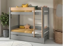 HOYA stapelbed 3 plaatsen van massief dennenhout 90x190 - Grijs/Den