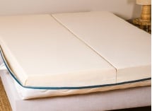 Samenstelling van de topper: 6 cm 100% natuurlijk latex (ongeveer 97% zuiverheidsgraad) bedekt met een afneembare hoes van 60% TENCEL™ Lyocell en 40% polyester.